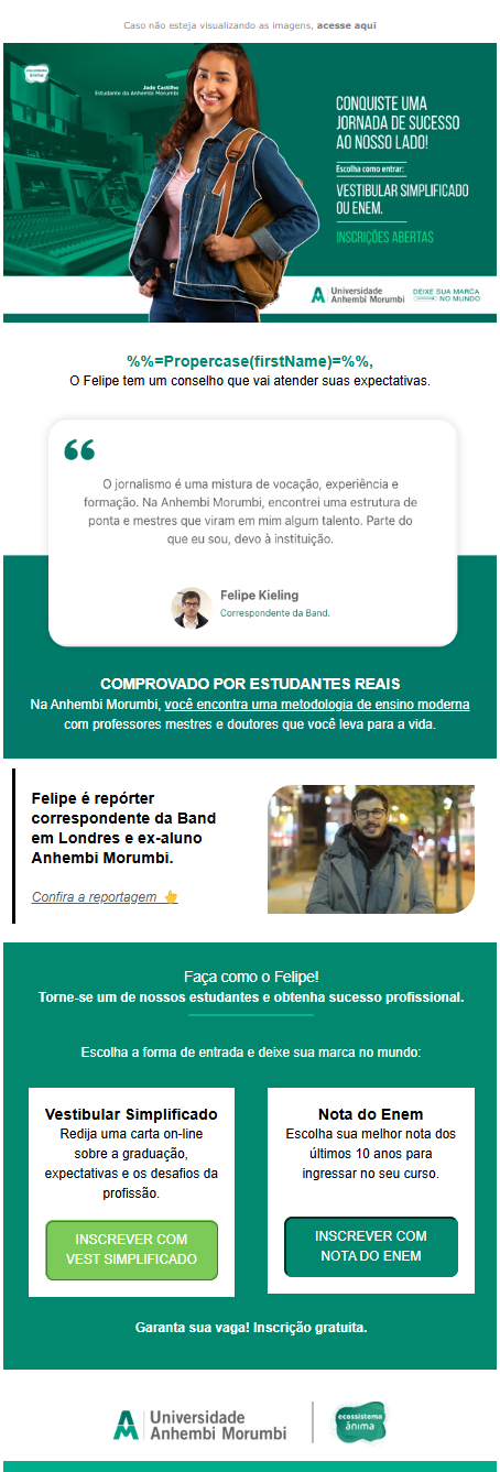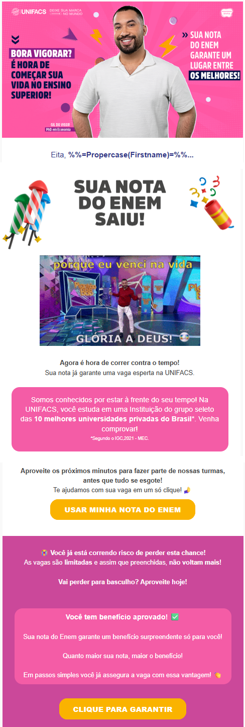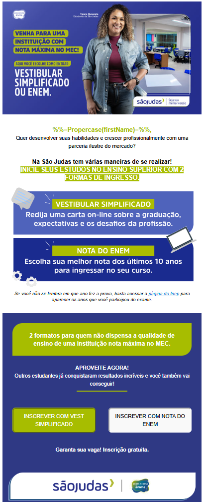 Atuo com marketing de conteúdo, inbound marketing e campanhas digitais focadas em performance, especialmente em e-mails, WhatsApp e estratégias de jornada.